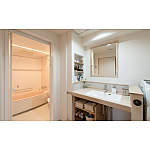 また、二つあった洋室を一つにまとめた寝室横には、ベランダからの通路も兼ねたウォークインクローゼットを設計。「乾いた洗濯物をすぐにクローゼットにしまえるんです」とうれしそうに語る奥様。お気に入りの空間に機能的な動線が加わって、大満足のご様子でした。