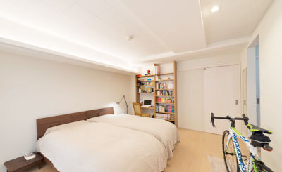 また、二つあった洋室を一つにまとめた寝室横には、ベランダからの通路も兼ねたウォークインクローゼットを設計。「乾いた洗濯物をすぐにクローゼットにしまえるんです」とうれしそうに語る奥様。お気に入りの空間に機能的な動線が加わって、大満足のご様子でした。