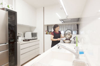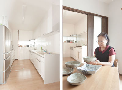 キッチンの収納スペースに余裕ができて、好きな作家のお皿を購入する楽しみも増えました。リフォーム後は毎月、ヨガやお習字教室の仲間を招待し、手料理をふるまわれています。