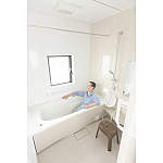 「前はタイルの床で本当に冷たかった」とおっしゃるご主人。今は予備暖房で暖かくして入浴できるようになりました。以前は灯油・ガス・電気を使用されていましたが、エコキュートも導入してオール電化に。光熱費は以前に比べて約5000円も安くなったとか。