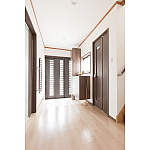 これからのことを考えて、バリアフリーにすることもリフォームのテーマの一つでした。車椅子の使用にも耐える、傷つきにくい床材を採用し、玄関の上り口には手すりを設置。家の中の段差は徹底的に排除されました。