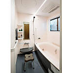 パナソニックのショウルームで選ばれた最新型のバスルーム。ゆったり入浴できる広さと、手すりなどの設置で安全にも配慮。