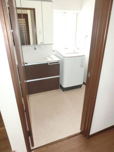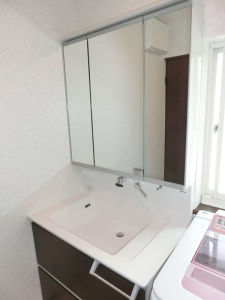 ★洗面所は収納力のあるウツクシーズを採用。たくさんの物が収納できます。床はビニールシートに貼り替え。