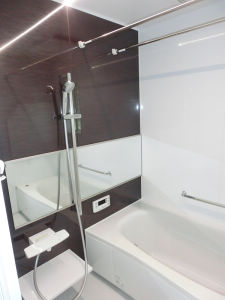 壁や浴槽との色合いで、浴室内がとても明るくなった。