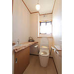 将来を見据えアームレスト付のトイレに 無垢カウンターがお部屋のアクセントに