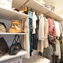 結婚にあたり新居の収納を増やしたいとお考えだったK様。二人のライフスタイルに合わせ、クローゼットと押入れ、和室の一部を大収納のウォークインクローゼットに。パーツを組み合わせられる「アイ・シェルフ」で空間を最大限に活用し、バッグや小物、ネクタイからロングコートまでを整然と収納しています。「取り出す」のも「しまう」のも、毎日楽しくなりました。