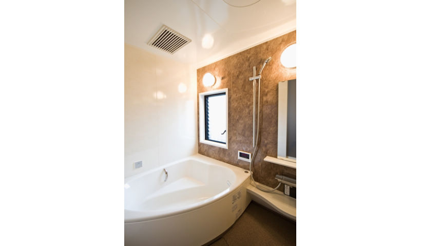リビングには畳コーナーを設けお孫さんが昼寝をするのに格好の場所に。お祖母様の居室はトイレとダイニングの間に配置し、家族がいつも見守られるようにしました。水回りもゆったりとしたバリアフリー設計で、四世帯が快適に暮らせる住まいが完成しました。
