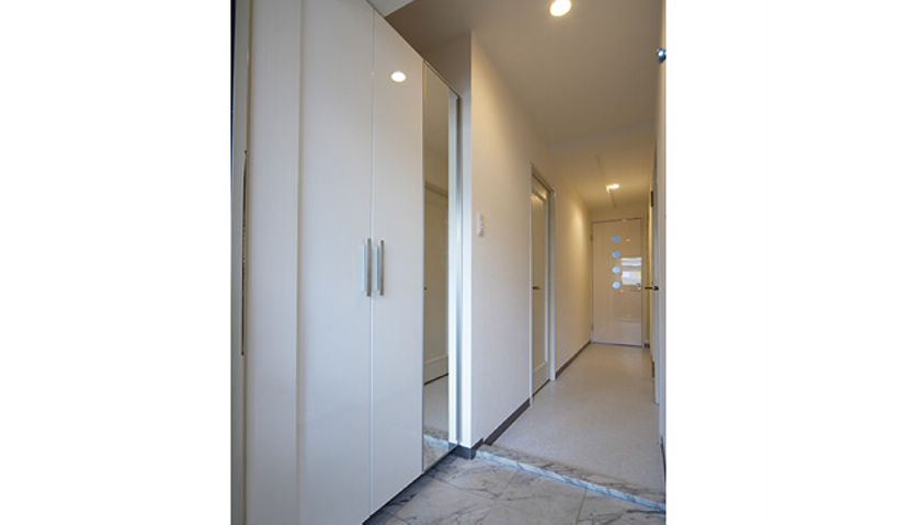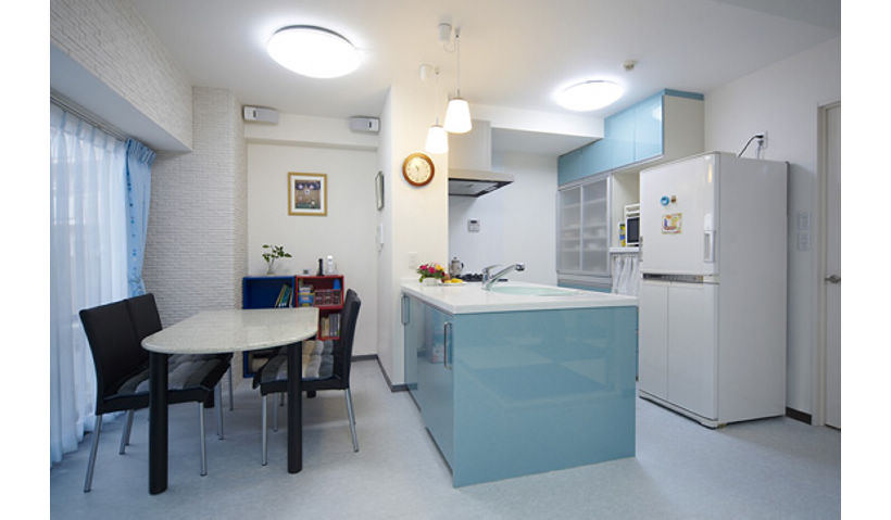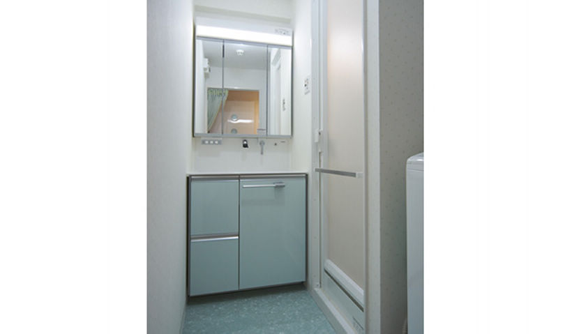 白を基調に、LDKはブルー系、サニタリーはグリーン系で統一。