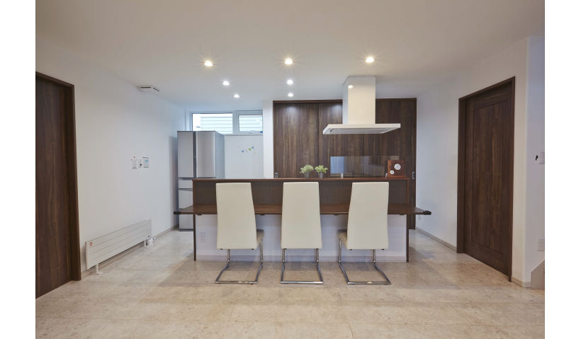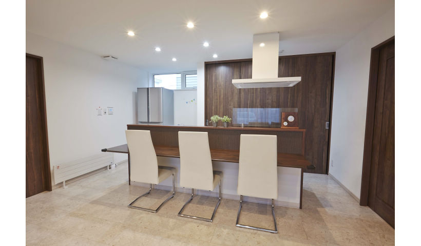 そんなリビングに合わせて、壁付けだったキッチンも、ぐるっと回遊できるアイランド型へ変更。家事の動線をさえぎることなく、使いやすさが格段にアップしました。さらにキッチンの壁側には、大容量の収納を設置。必要な物はしっかりとしまえて、さっと扉を閉めれば見た目もすっきり。開放的で一体感のある居心地のいいLDKに生まれ変わりました。