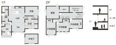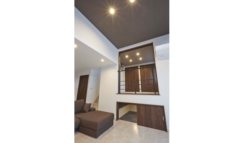 縦にゆとりのある空間を最大限に生かして、元々あった1階の和室は、床を1メートルほど上げて、中二階に変更。リビングに面した側は視線をさえぎらないアイアン柵とすることで、リビングの様子も一目で見渡せます。和室の下はリビングから70センチほど床を下げた半地下スペース。収納スペースもしっかり確保し、おもちゃや遊び道具をたくさん置ける子どもたちのプレイルームです。隠れ家のような居心地は、まるで秘密基地。「家に来た友達のお子さんは、みんなここで遊んでますね」と、M様も大満足。