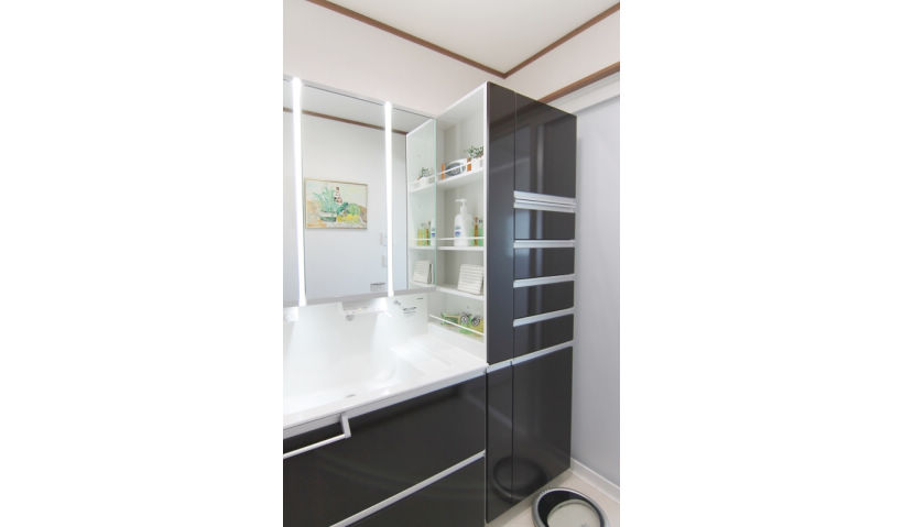 巾900mmの洗面化粧台でつけ置き洗いもラクラク。