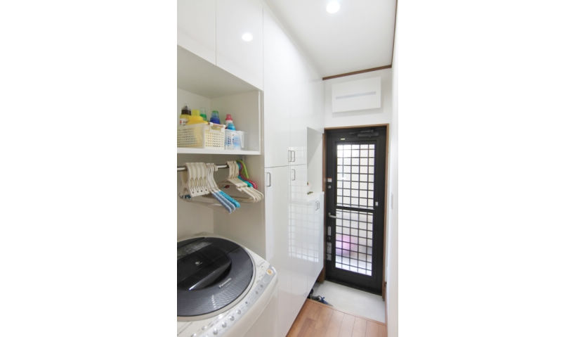 アフター:手洗いの洗濯に欠かせない広い洗面ボウルは奥様のこだわり。