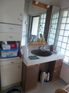 ビフォア:ボールが小さく水はねが気になる洗面台