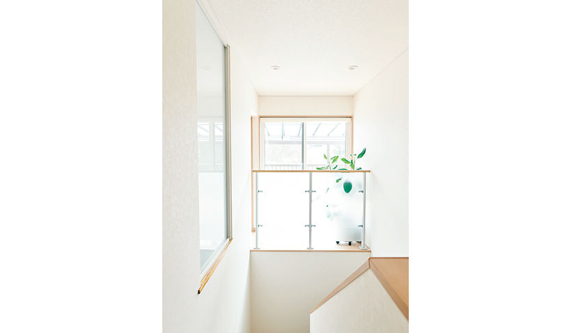 吉川 弘 ひとつながりのLDKをつくる一方で、壁を新設し、耐震性を向上させました。階段上に窓やアクリルの腰壁を設けることで、LDKだけでなく家全体の明るさも確保。LDKの中心につくった階段を通じて暖気が2階に逃げてしまうので、床暖房は絶対に必要だとお薦めし、LDK全体に導入しました。