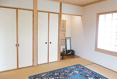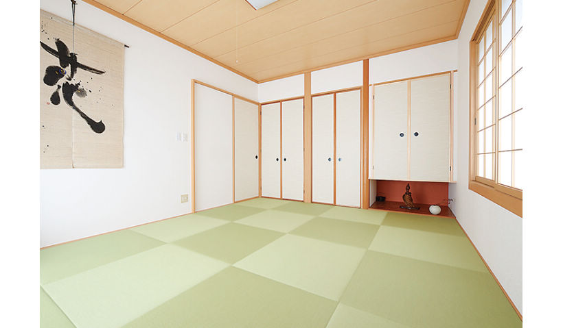 アフター:半畳タタミを採用したモダンな和室。床の間の上部を押し入れにし、収納力をアップ。