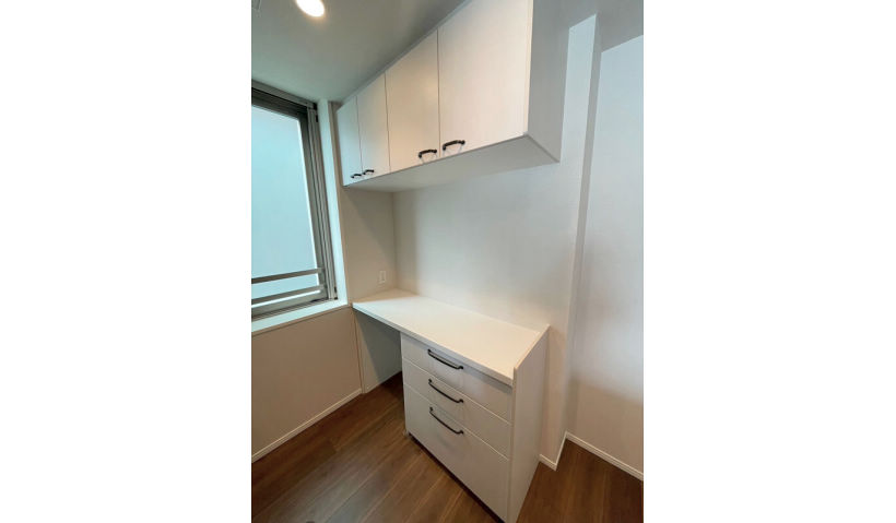 壁紙に合わせホワイトアッシュのカラーを選択され、部屋が更に明るく清潔感のある印象へ生まれ変わりました。