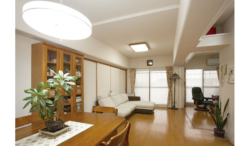 もともと三世帯6人の大家族だったM様。お子様の独立や、ご自身の定年退職を機に、ご高齢のお母様や愛猫とゆったり過ごせる家へリフォームすることに。部屋数を減らし、バリアフリーにも配慮して大空間を創出しました。