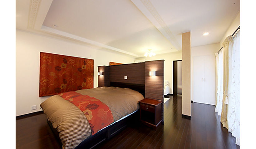 15年前、借家として使われていた住まい。和室2部屋を襖で仕切った、ひと昔前の間取り。この間取りを変え、新婚生活のスタートに。縁側に和室というよくある間取りから一体化ルームのご提案(リビング+寝室)。リビングにはソファーを置き、ゆっくりテレビが見れるような空間を。また奥様の洋服が収納できるクローゼットを配置しました。