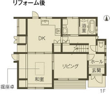 息子様の結婚をきっかけに同居することにされたO様。「家族そろって掘りごたつで食事をしたい」というご希望をかなえるため、離れていたダイニングキッチンを和室の隣に移動。和室の南側を増築して広げ、天井を高くして間接照明を埋め込みました。琉球畳の部屋の中央には掘座卓を設置し、家族5人がゆったりと座れます。明るい床にダークブラウンの建具や家具を配した軽快な和モダンの空間は、訪れたお客様からも「旅館みたい」と大好評。窓や建具を通してやわらかな光が差し込む、心落ち着くだんらんの場が完成しました。