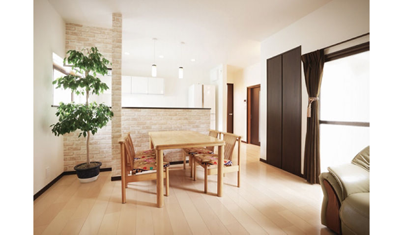 ダイニングとリビングの間の壁を撤去し、広びろLDK空間を創出。抜けない柱はキッチンの腰壁と同柄にして空間のアクセントに。キッチンには、おそうじラクラクのIHクッキングヒーターを採用し、収納も新設。カップボードは身長に合わせて手の届きやすい位置に天袋を配置し、ゴミ箱や米びつの定位置もあらかじめプランに盛り込むなど、奥様への思いやりがいっぱいに詰まったLDKとなりました。