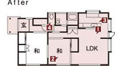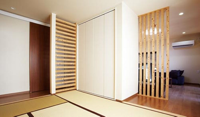中古住宅を購入し、リフォームされたK様は「細かく部屋割りされた間取りを開放感のある空間に変えたい」とお考えでした。構造上、撤去できない壁には縦格子などのデザインを施してアクセントとして活用。ポイントとして一部の壁面を水墨画調にして、モダンな趣のリビングが完成です。和室とリビングは、格子の向こう側に広がる空間を互いに感じ合えることで、ひとつの空間としてつながりました。「壁があるからこそ生まれる空間があるのですね」とうれしい驚きを感じられているK様です。