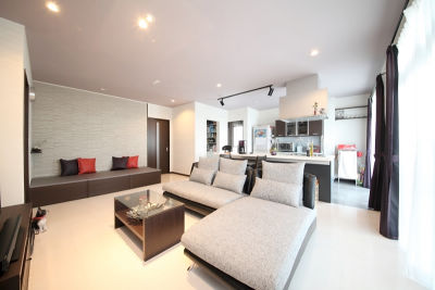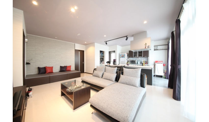 お好みのシックモダンなインテリアの中で過ごしていただけるよう、特にLDKの色使いにこだわりました。ご家族様にご納得いただけるよう、打合せにも力が入りました。ご要望にもあった夏の暑さ・冬の寒さの改善策では、省エネ改修促進事業補助金(※現在受付終了)をご説明し、対象となる工事をご提案し、より性能の高い断熱工事をご採用いただきました。