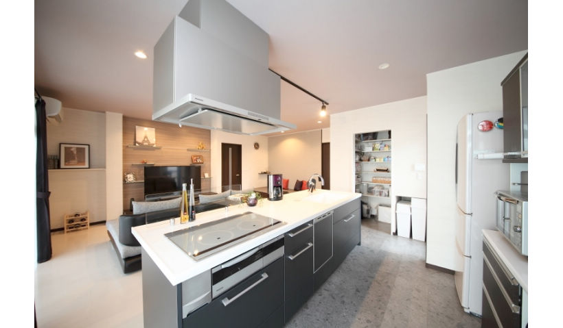 アフター:大人数でも調理可能なアイランド型は来客時には効果的な演出も可能。キッチンもインテリアのひとつとして重要視しました。