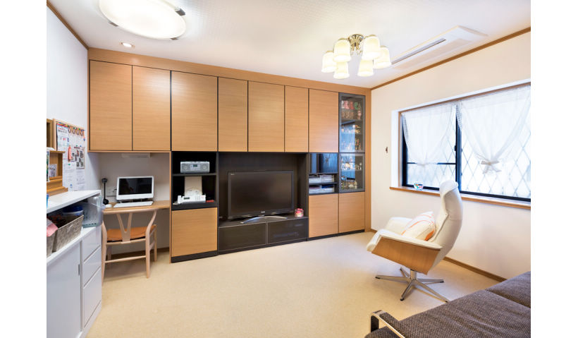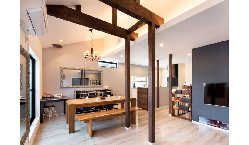洋室と和室を一体化して子世帯LDに。斜め天井や抜けない柱をアクセントに。