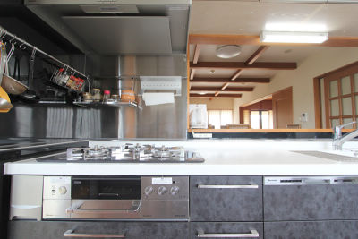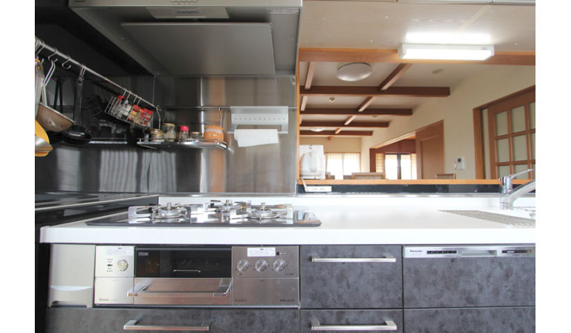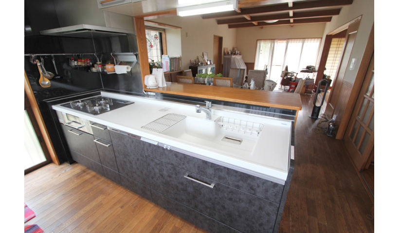 新型アラウーノはとても使いやすく掃除しやすいのはもちろんのこと、センサー敷き自動水洗にした手洗器は、今まで手動水栓で困っていた”水の出しっぱなし”が全くなくなったと、とても喜んでいただけています。孫を連れて遊びにくるお子様も羨ましがるほど。トイレのペンダント照明は新築当初に選んだアンティークの愛着ある照明だったため、空間がそれとマッチする内装もお気に入りお風呂は新しくきれいになり、小さな孫達をお風呂に入れるのも快適に。清掃性にこだわったため、”きれい”を継続できそう、と言っていただけました。キッチンは5センチ幅が短くなりましたが、引き出し収納になったことで奥の方まで使いやすくなりました。短くなった分だけをステンレスカウンターで一体に造作し、たくさんの調味料が並べられるようにしました。そこに液体調味料を並べても、簡単にサッと水拭きができるステンレス材にしたことで、遠慮なくカウンターが使えるようになりました。