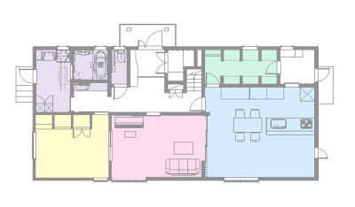 | テーマ | 団らんキッチン、バリアフリー、明るい部屋、耐震、広々 |