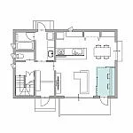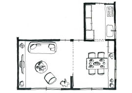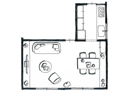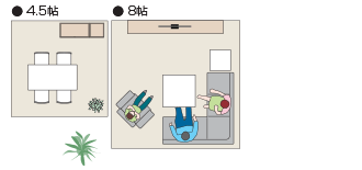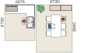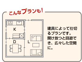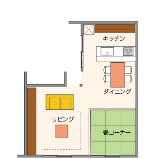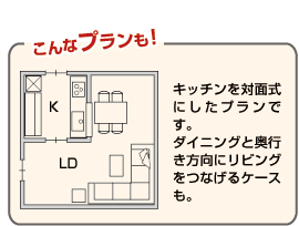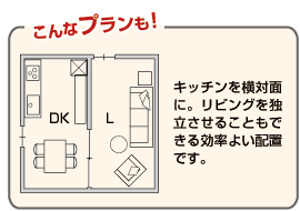 リビングを独立させ、ダイニング・キッチンをセットで構成。