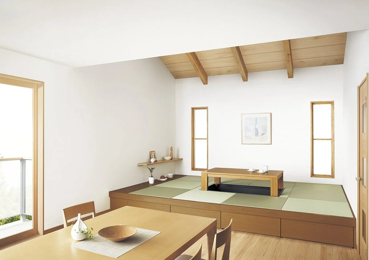 リビング続きの畳コーナーを設けると多用途に使えます。(昼寝・キッズスペース・来客対応など)