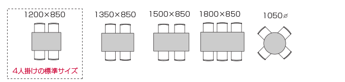 テーブルサイズの目安(4人用:約1.2m~1.4m幅など)