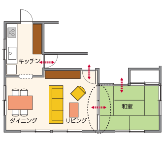 どの空間とつなげるか、どこまでを開放的にするかによって、使い勝手も居心地も大きく変わります。