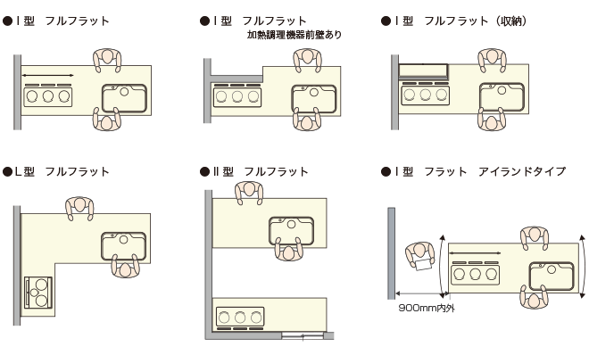 - 最近ではアイランド型やペニンシュラ型といった、さらに自由度の高いスタイルも増加中