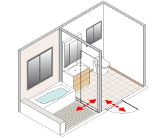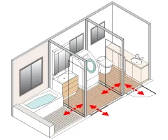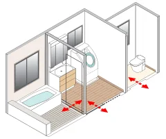 洗面室とは別に脱衣室を独立させ、入浴時のプライバシーを保つことができます。