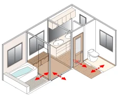 脱衣、浴室・洗面・トイレがそれぞれ独立した水廻り