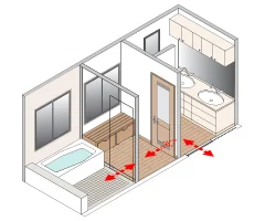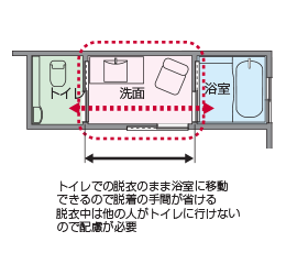 スペースを最小限に抑えた一般的な水廻りのプランです。