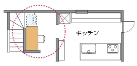キッチン横や階段ホールなどの“余白”を活かして、カウンターや棚を設けてつくる家事コーナー。回遊性のある間取りと組み合わせると、移動の少ない効率的な家事動線が実現します。