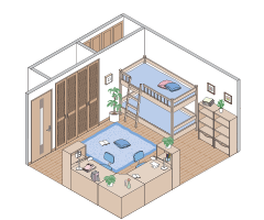必要な広さは、ベッド・学習机・収納といった家具のサイズと動線によって決まります。