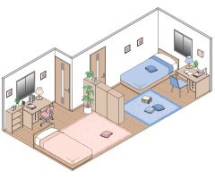 二人で使う部屋の場合、寝る場所と勉強する場所を別々にすることで、お互いに集中しやすくなります。