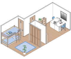 プライバシーを大切にした個室型。勉強や就寝、趣味などそれぞれのスタイルに合わせて自由に使えます。