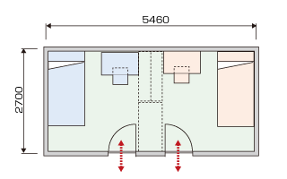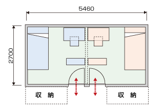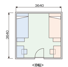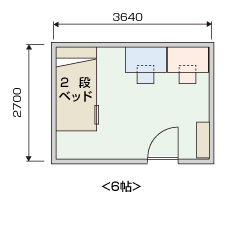 - 二人で使う場合:2段ベッドなら5畳〜、シングルベッドを2台配置するなら6畳以上が理想。
