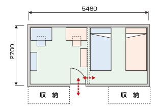 収納や間仕切り家具を活用して、成長や暮らしに合わせて空間を変化させるプランです。