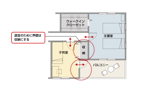 - 主寝室とバルコニーを共有することで、適度な距離感のある関係性も築けます。