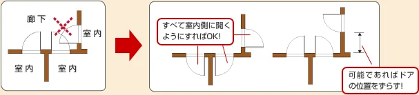 2~3部屋のドアが配置される場合は特に注意しましょう