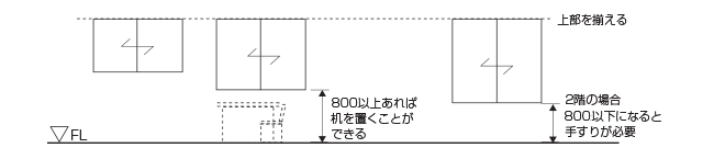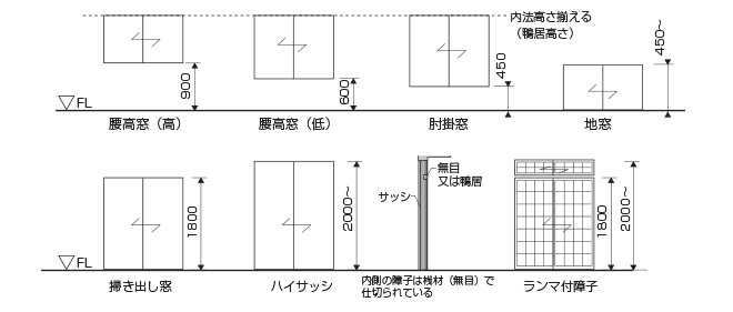 洋室とは異なる和室独自の開口位置と高さの関係があります。