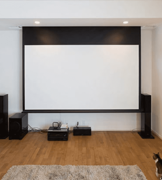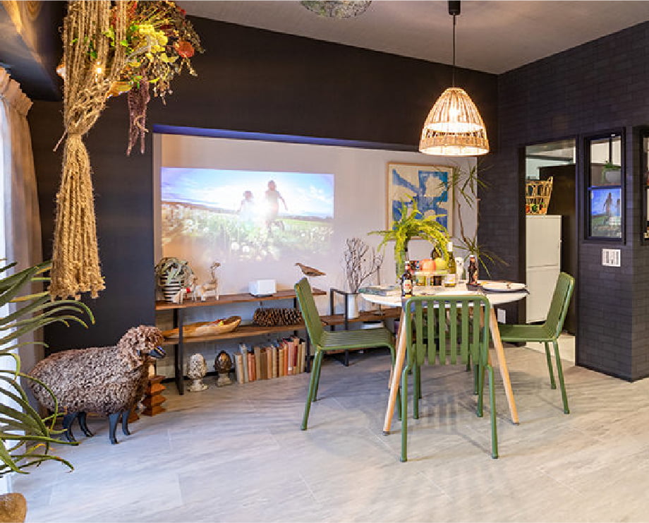 最近はテレビではなく、リビングにプロジェクターを設置する家も増えてきている。リビングが広々としたフリースペースと化している。
