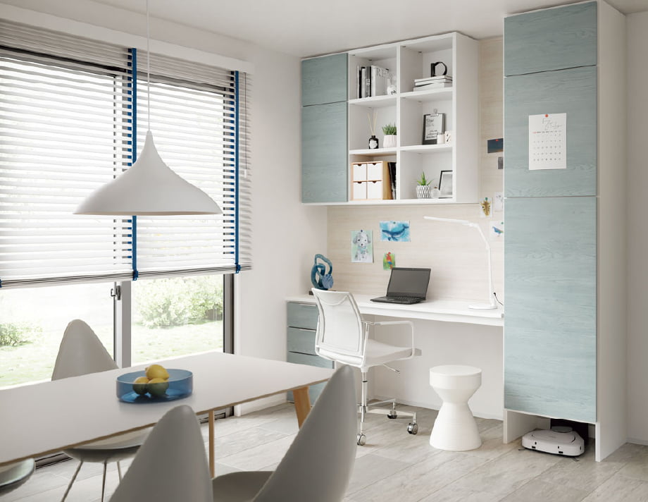 リビングや寝室の他にも廊下やパントリーにデスクを置いてワークスペースに。