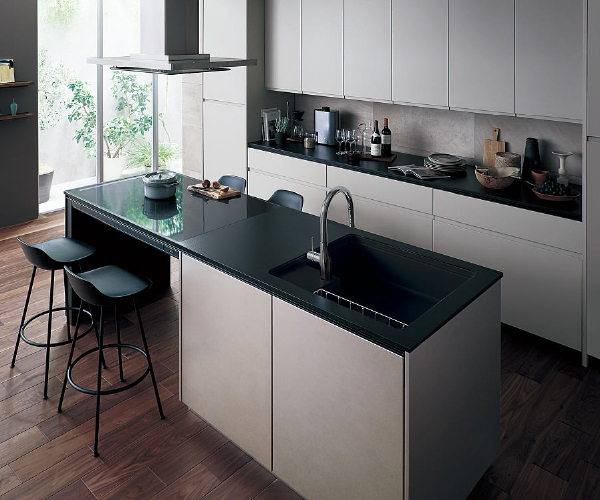 左右どちらからでも入れるアイランドキッチンなら、二人でキッチンを使ってもお互いが邪魔になりません。